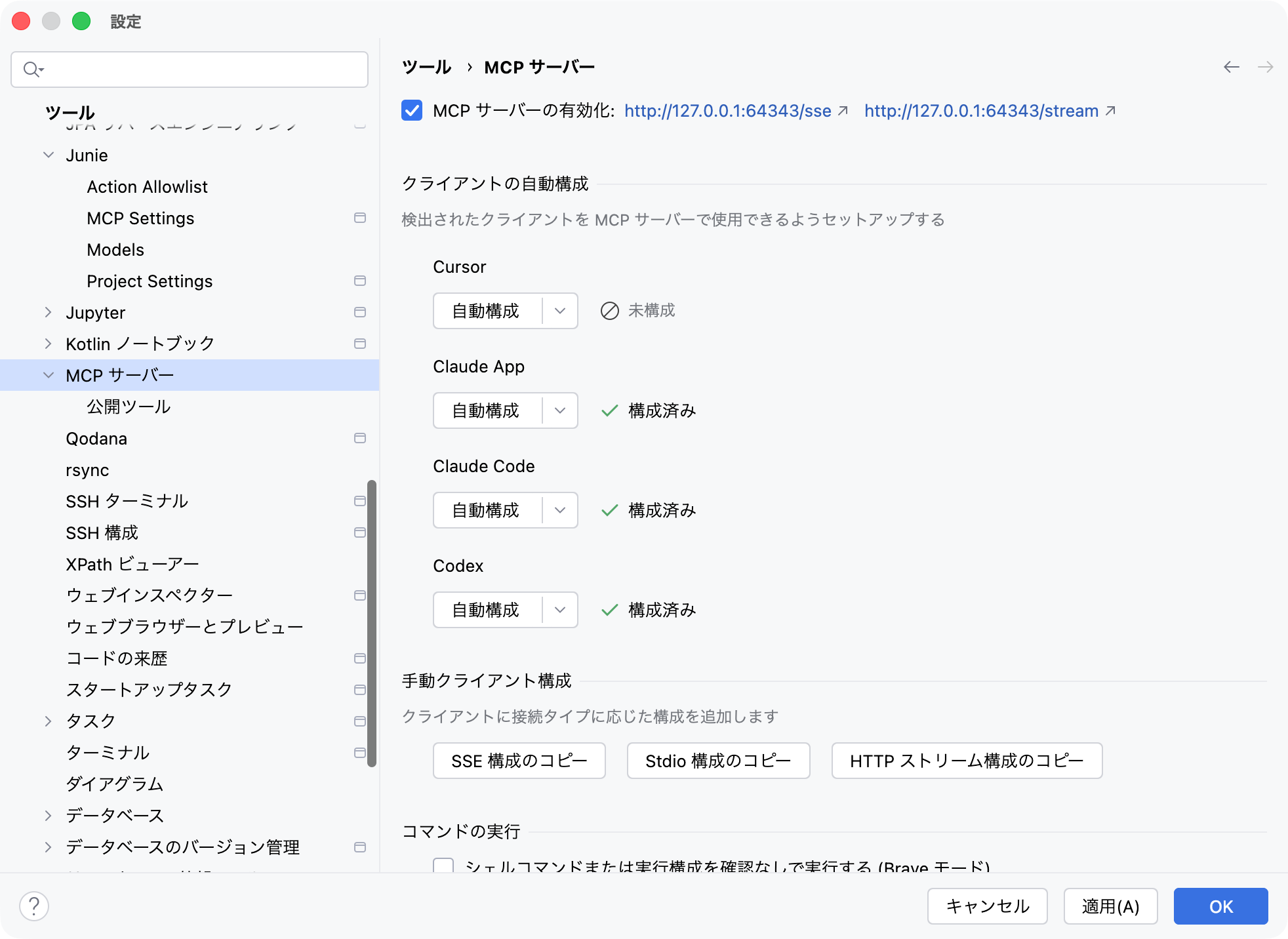 最近では、JetBrainsのAI Assistantだけでなく、CodexやClaude Codeなど、複数のAIツールを併用している方も多いのではないでしょうか。そんなときに役立つのが、JetBrains IDEのMCPサーバー機能です。