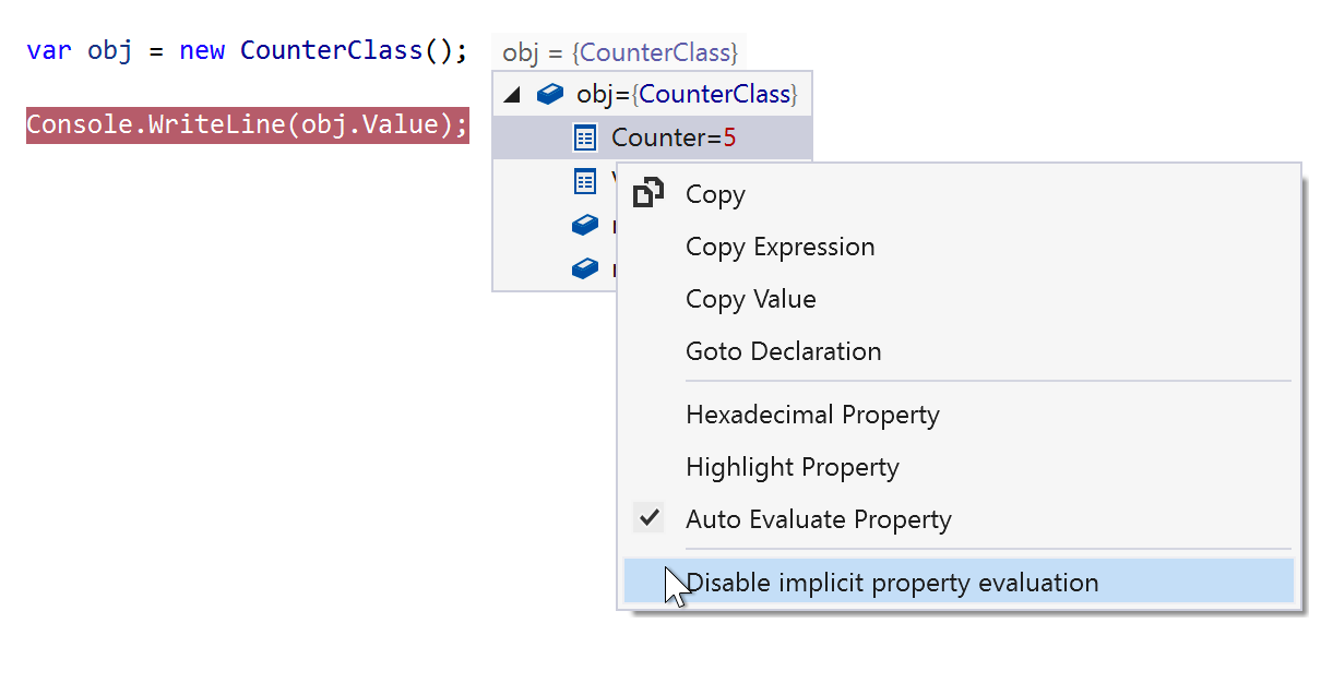 - “Enable property evaluation and other implicit function calls” 設定に遵守し、要求に応じてプロパティ値を評価できるようになりました。