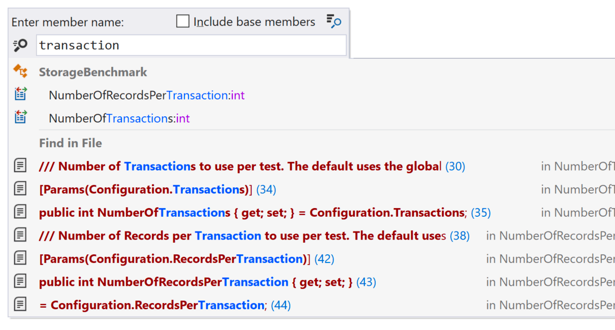 - “Go to File Member” ダイアログでファイルを検索できます。結果の一覧には、一致するすべてのメンバ名と検索文字列のファイル内のすべての場所が含まれます。